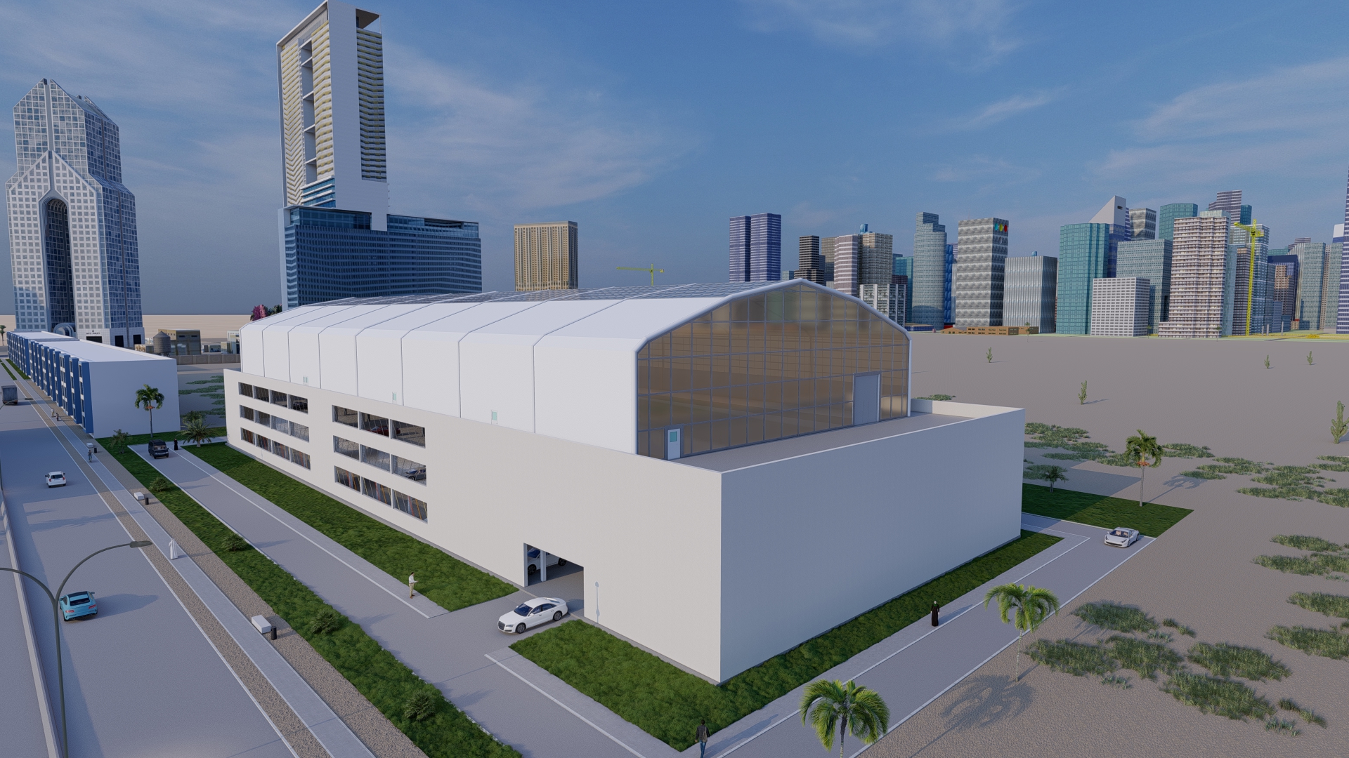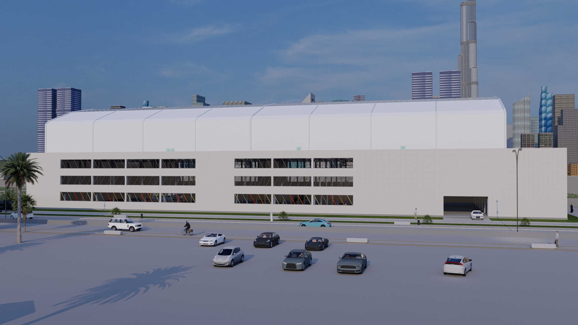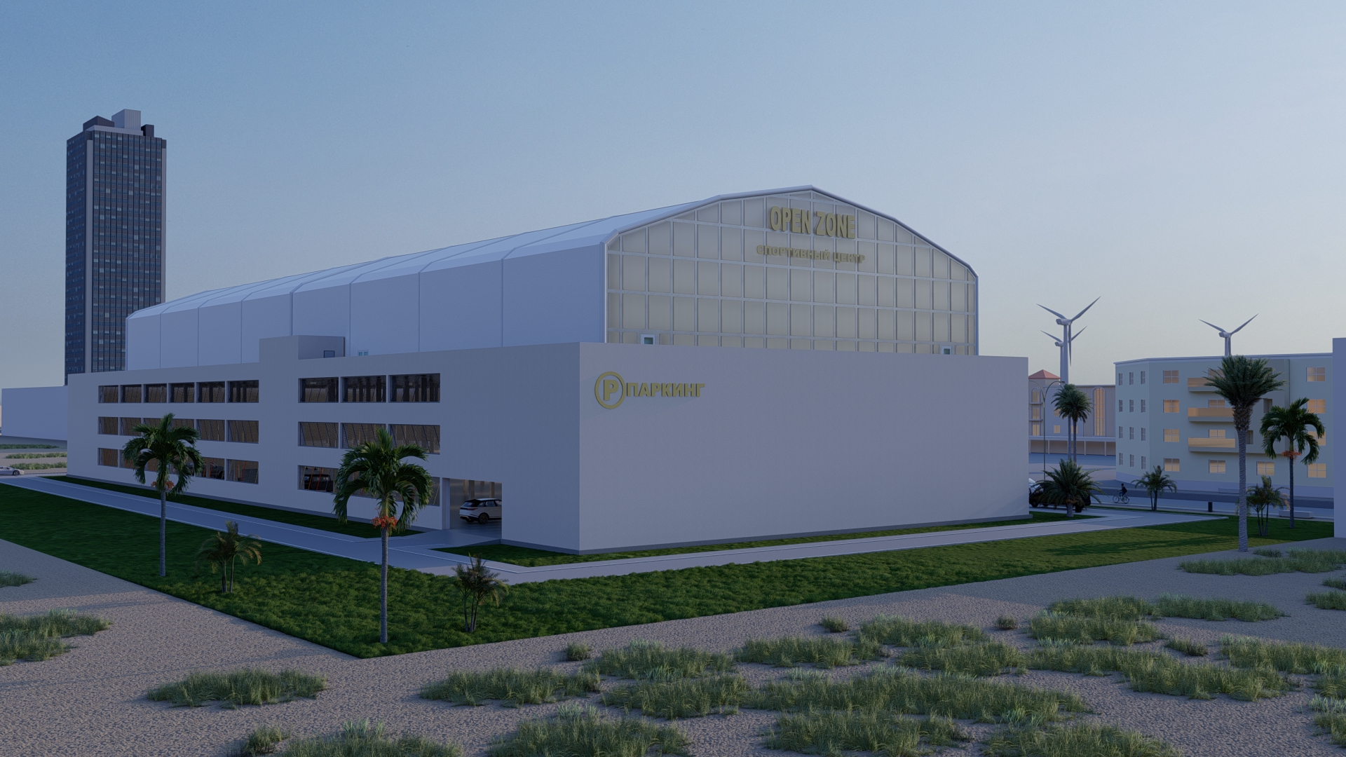 Спортпаркинг - многоуровневый паркинг в жилом районе со спортивным центром на крыше позволяет разместить просторный