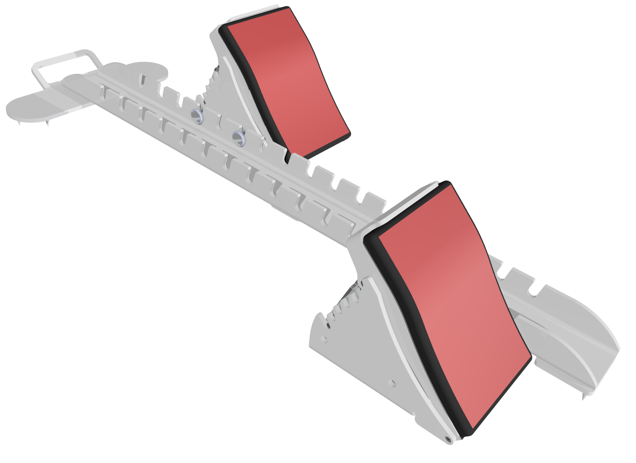 - Колодки регулируются по углу наклона в 5 положениях и имеют синтетическое покрытие на упорах для ног.