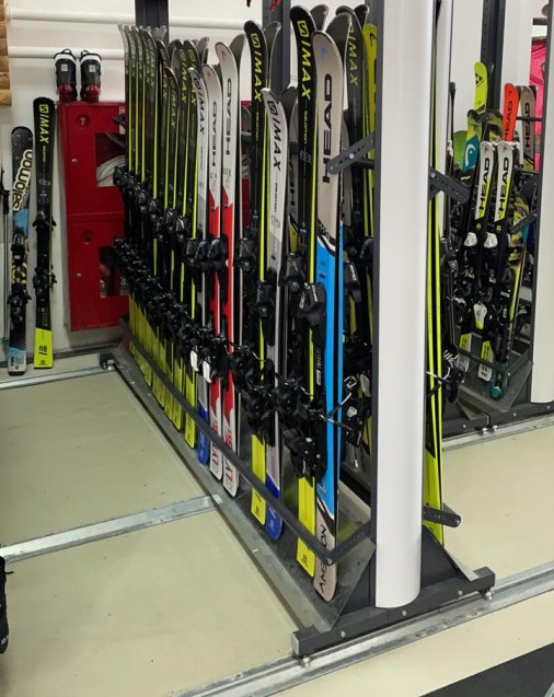- Проверенная временем трехточечная система фиксации позволяет быстро и в то же время надёжно установить лыжи в стеллаже.