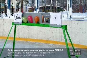 Стойка мишенная переносная универсальная СМПУ-3 с дополнительными модулями предназначена для индивидуального использования или для оборудования спортивных тиров, развлекательных аттракционов, в том числе на открытом воздухе и пр.