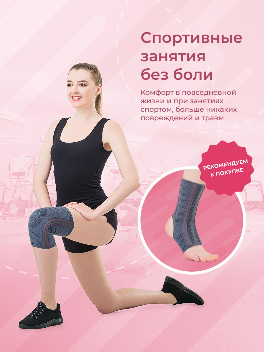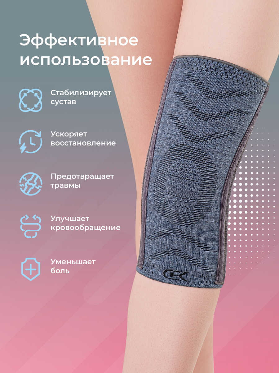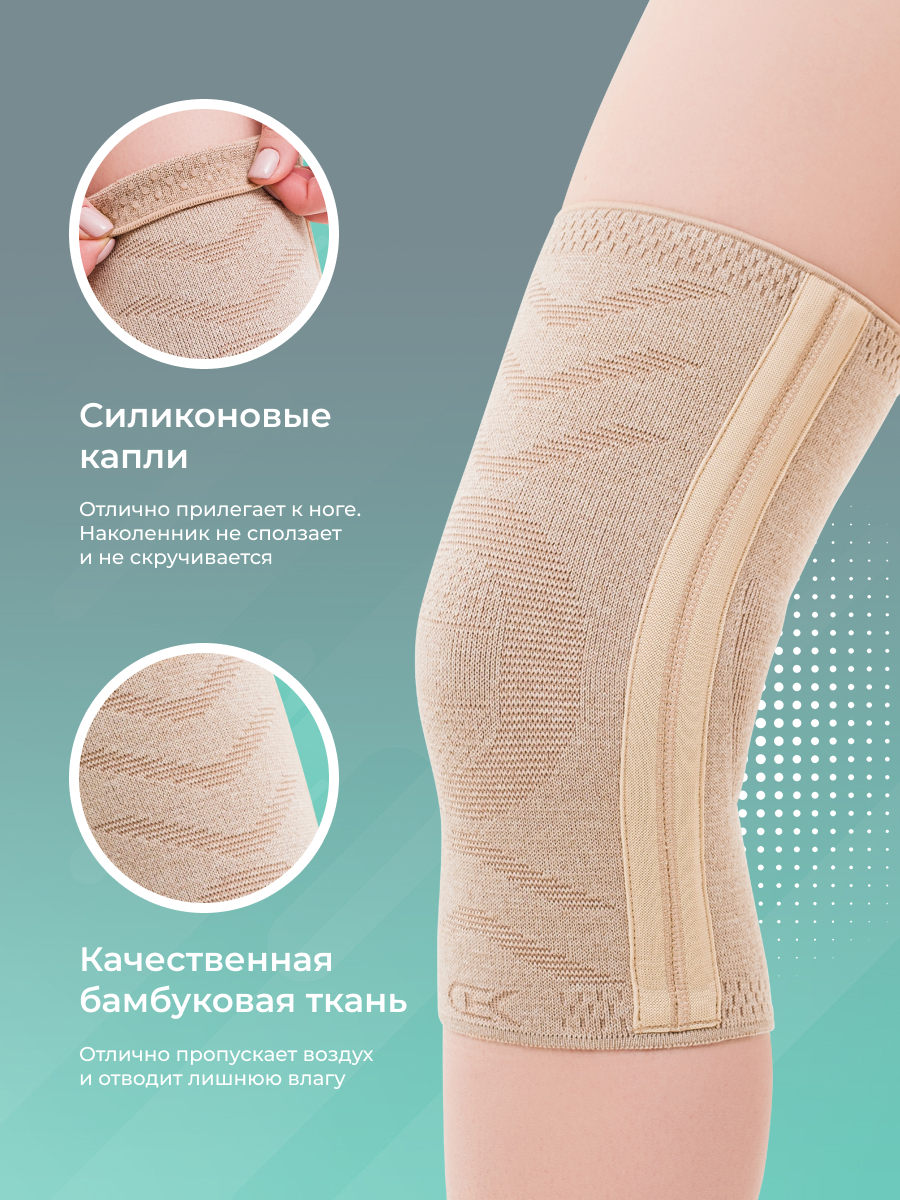 Суппорт на колено представляет собой эластичное компрессионное изделие с умеренной степенью фиксации. Суппорт имеет две пары эластичных металлических спиральных пластин, которые оказывают выраженное стабилизирующее действие на капсульно-связочный аппарат коленного сустава. Спиральные пластины расположены симметрично, что позволяет использовать изделие для левой и правой ноги.  Суппорт обладает выраженными тактильными и антибактериальными свойствами.
