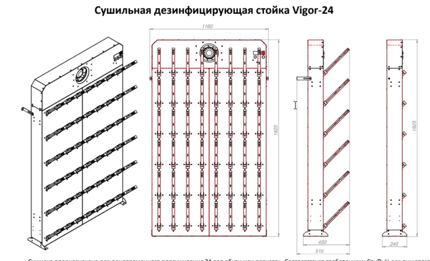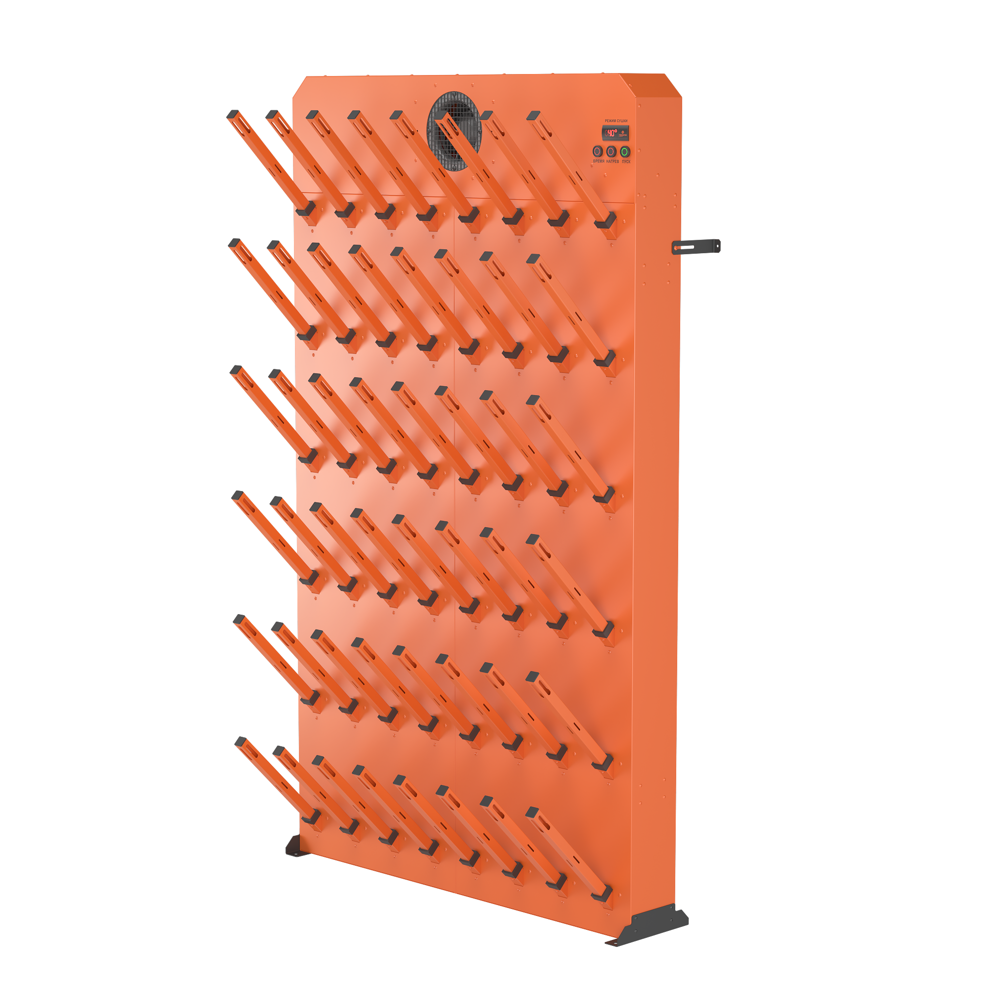 Сушилка для просушивания 24 пар обуви или перчаток, ботинок, коньков, бутс, одежды и др. Соответствует требованиям: СанПиН для пищевого производства, Роспотребнадзора для прокатов экипировки. Для установки в сушильных комнатах и раздевалках с вентиляцией.Может быть использована как самостоятельное одиночное устройство, так и стать модулем для "сушильной стены". Универсальное решение с потреблением 2.2 кВт для быстрой сушки большого количества одежды и обуви - гостиниц, прокатов, спортивных школ.