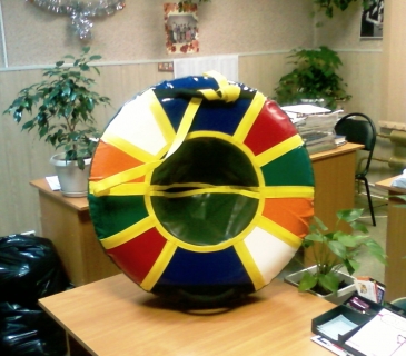 Ватрушка сделана из плотной тентовой ткани, внутри которой находится камера.