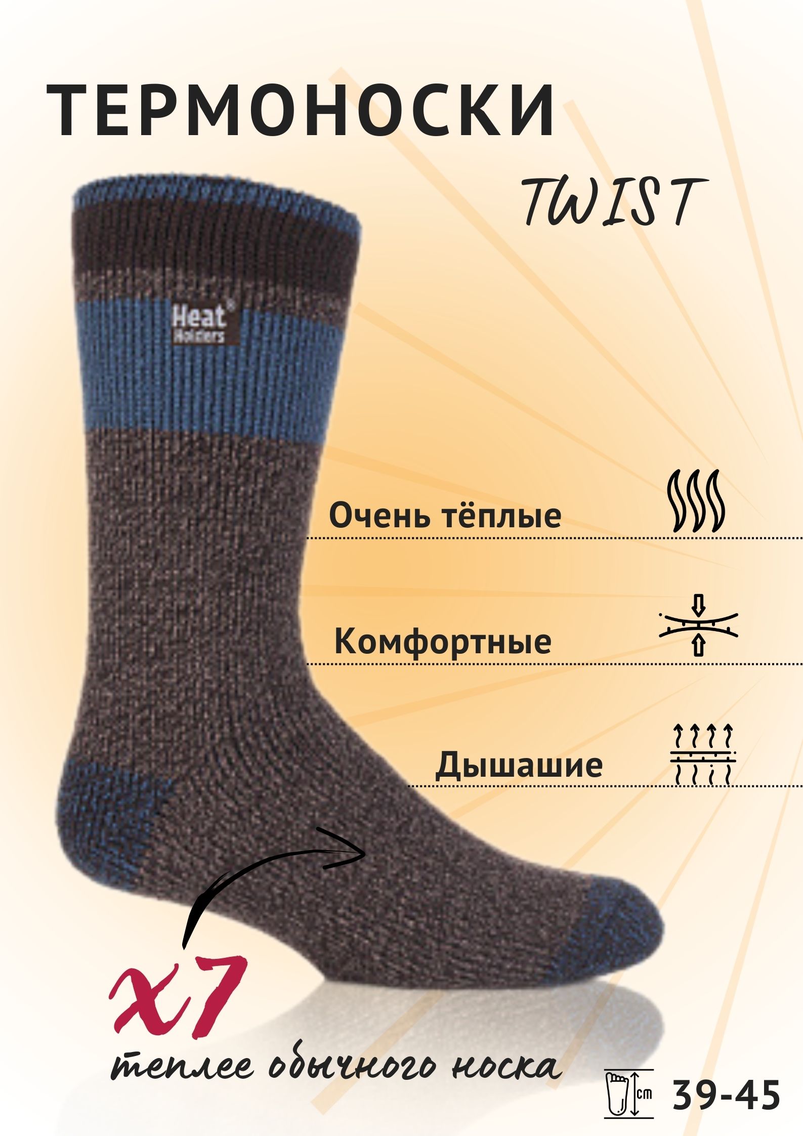 Мужские  полосатые носки Heat Holders Twist!  В модели Twist используется теплоизоляционная меланжевая пряжа высшего качества. Мягкий начес с изнаночной стороны увеличивает воздушную прослойку между носком и ногой, обеспечивая тепло в  холодные дни. Термо-пряжа отводит излишнюю влагу, сохраняя сухость и комфорт . Идеально подходят для дома, охоты, рыбалки, для ношения со специальной обувью и суровых условий работы.