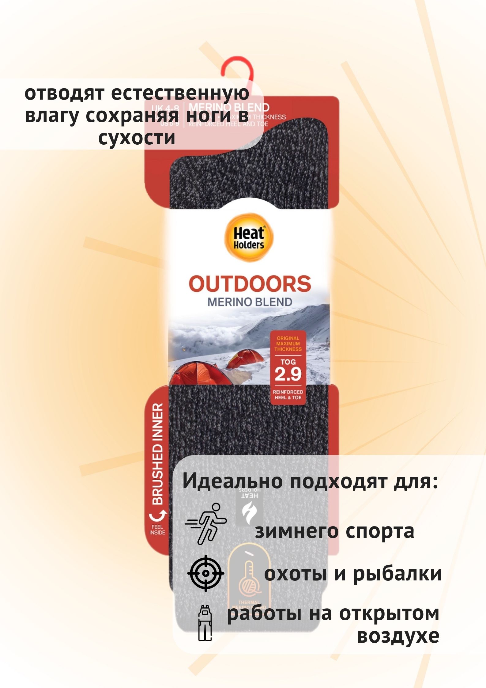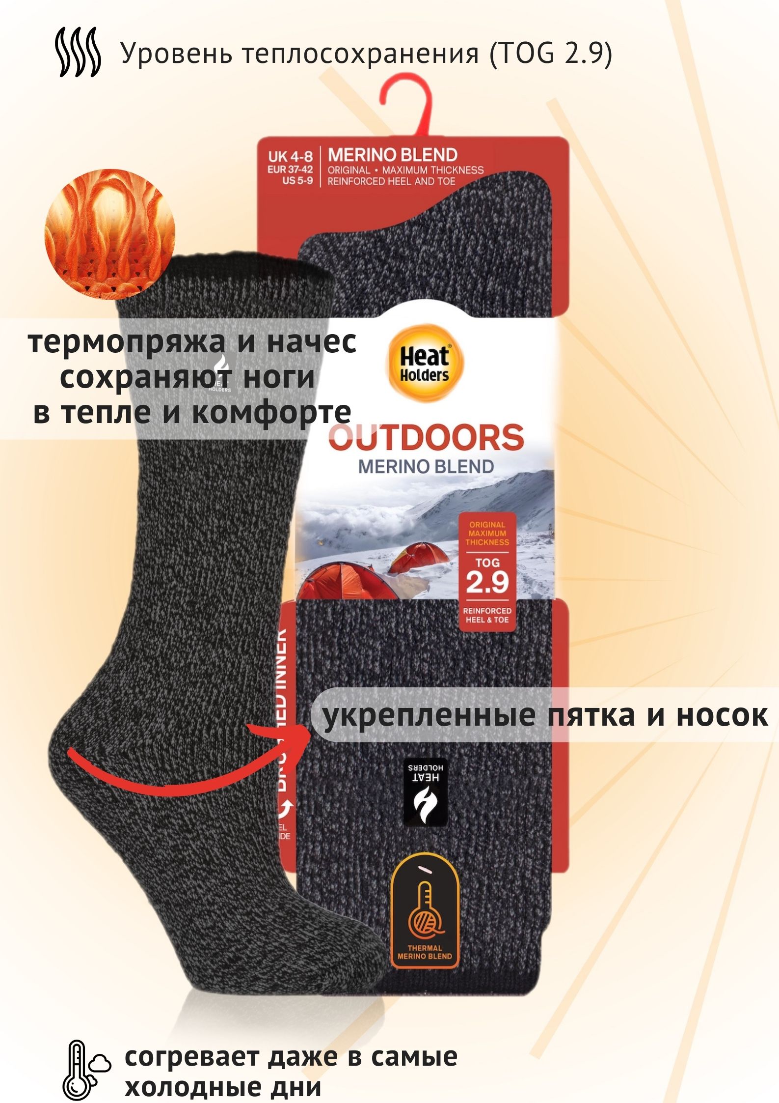 Женские носки Heat Holders Merino Blend! В модели Merino Blend используется мягкая и менее колючая шерсть мериноса. Благодаря объединению натуральной шерсти с современными волокнами, носки обеспечивают тепло в холодные дни. Термо-пряжа отводит излишнюю влагу, сохраняя сухость и комфорт в течение всего дня. Усиленная пятка и носок обеспечивают дополнительную защиту при интенсивном использовании. Идеально подходят для активного отдыха или длительного пребывания в суровых морозных условиях