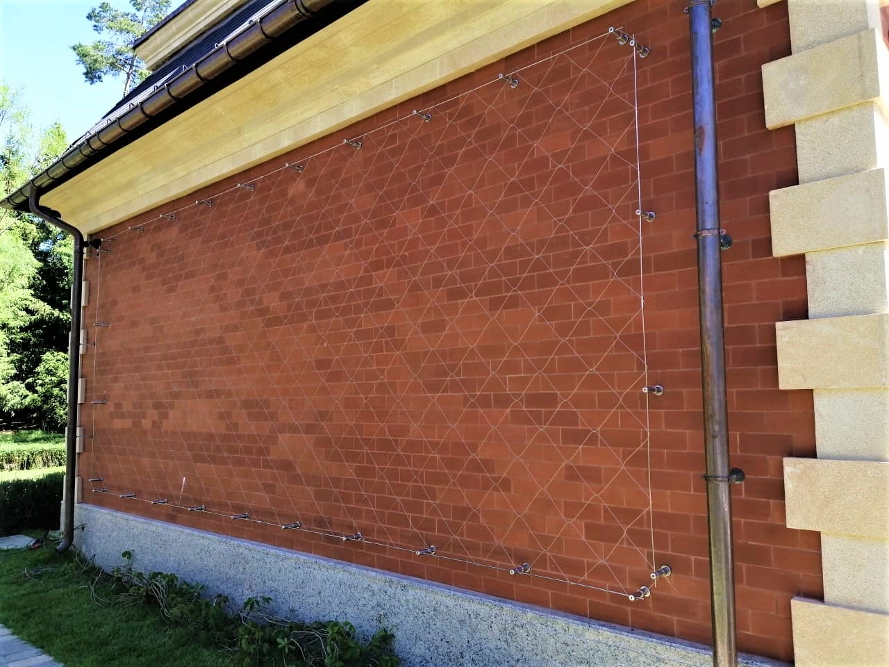 Сетка из нержавеющего троса 7х7 диаметром 2 мм с ромбической ячейкой диагонали которой составляют 160 и 280 мм соответственно, а длина стороны составляет 160мм.