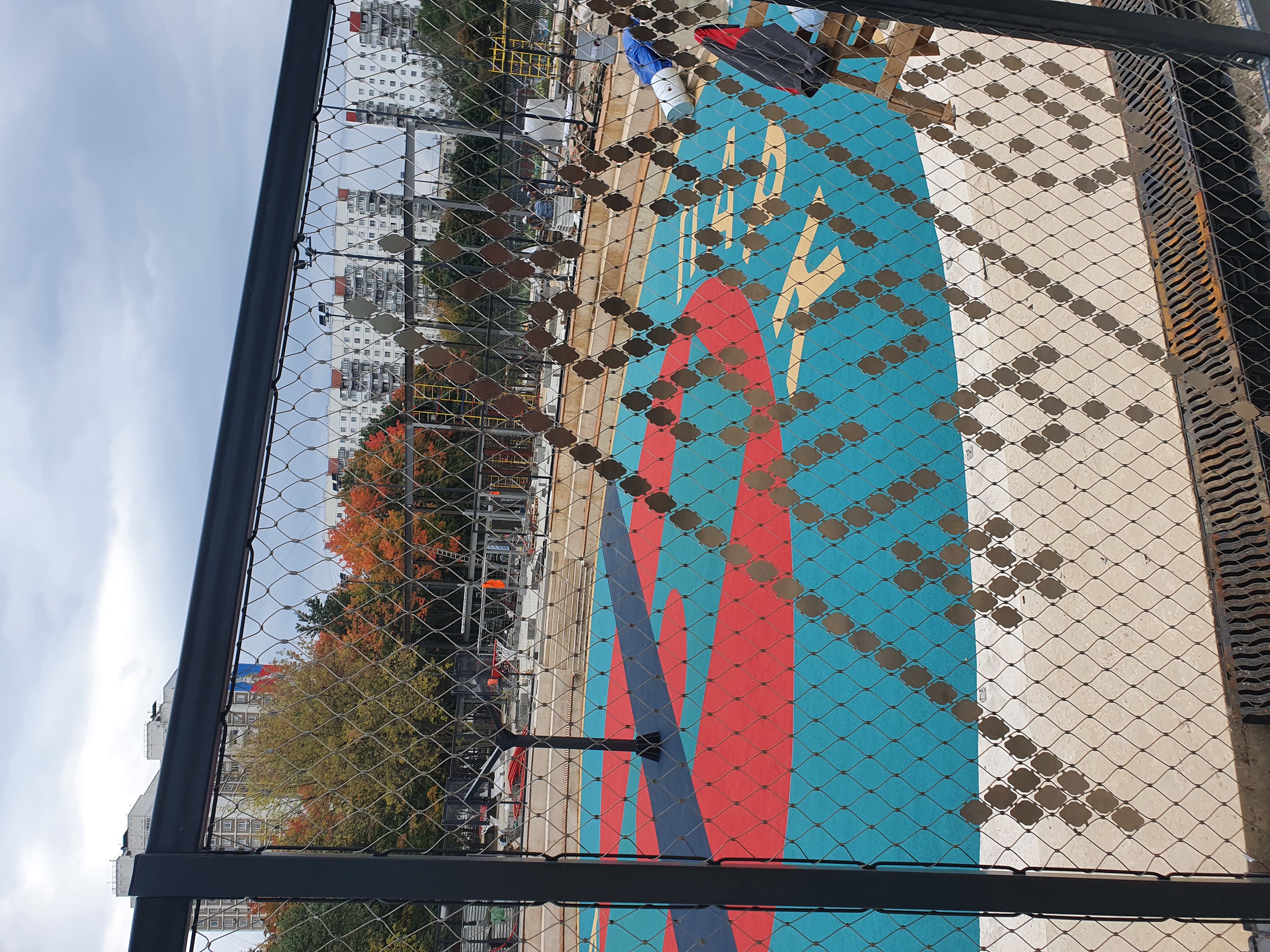 Сетка из нержавеющего троса 7х7 диаметром 2 мм с ромбической ячейкой диагонали которой составляют 40 и 70 мм соответственно, а длина стороны составляет 40мм.