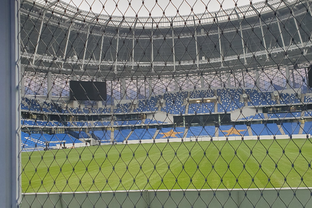 Сетка из нержавеющего троса 7х7 диаметром 3 мм с ромбической ячейкой диагонали которой составляют 70 и 120 мм соответственно, а длина стороны составляет 70мм.