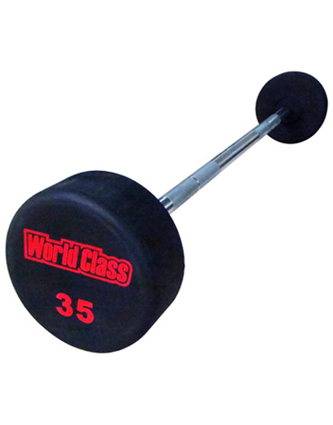 Черные уретановые штанги. Вес — от 10 до 55 кг с шагом 5 кг. В наборе 10 штанг.