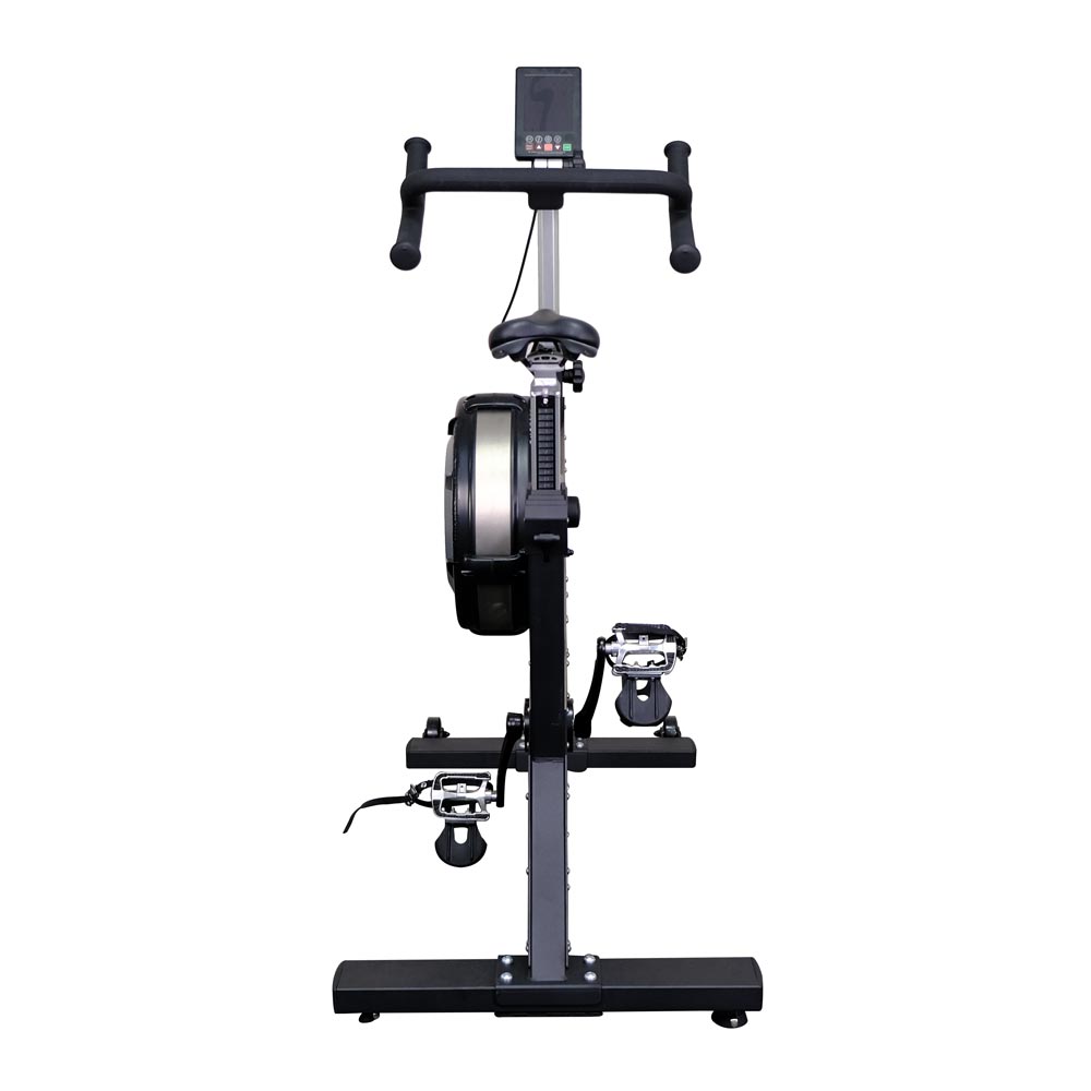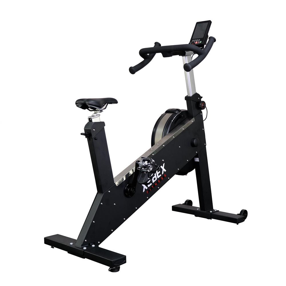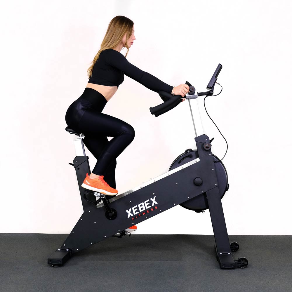 Xebex AMSB-03-BA – единственный байк с воздушным и магнитным сопротивлением, уровень демпфирования и магнитный уровень которого отображаются на консоли. Демпфер позволяет спортсмену регулировать количество воздушного потока на левой стороне маховика во время езды. А можно увеличить мощность, смоделировав наклон.
