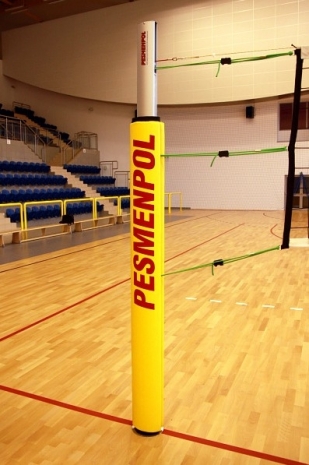 Стойки оснащены новаторскими решениями механизма натяжения. Регуляция высоты сетки очень удобная, передвижение механизма натяжки и блокировки положения осуществляется при помощи совместной удобной хватки. Блокировка высоты механизма (сетки) осуществляется при помощи эксцентрического зажима с вкладом из тефлона. Складная рукоятка натяжения после напряжения сетки выпрямляется и прячется внутри главного профиля.
