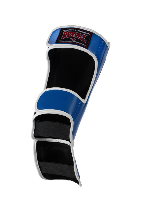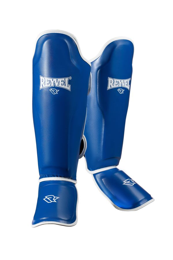 Внешний материал – ударопрочный винил, подкладка выполнена из прочной быстросохнущей ткани. Крепится на ноге двумя широкими застежками на липучке, расположение застежек обеспечивает плотное прилегание и исключает проворачивание во время тренировки, стопа и пятка фиксируются прочными резинками. Защиту голени и стопы обеспечивает трехслойный вкладыш из полимерной пены