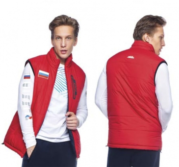 Жилет двусторонний прямого силуэта, с центральной застежкой на тесьму-«молнию». Воротник- стойка. На одной стороне полочки по бокам расположены два кармана с клапанами на кнопках и два прорезных кармана обработанные тесьмой «молнией». На второй стороне полочки, на груди расположен бесшовный карман с тесьмой - «молнией» и два прорезных кармана обработанные тесьмой - «молнией». Низ жилета регулируется с помощью эластичного шнура и фиксаторов.