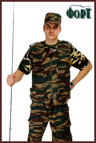 Жилет с застежкой на молнию с подкладкой из хлопчатобумажной ткани. Низ жилета регулируется хлястиками по бокам. На нагрудной части жилета имеется полукольцо для крепления нужных вещей. Множество карманов позволит разместить все необходимые мелочи. Жилет выполнен:
