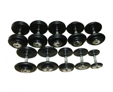 Гантели имеют анатомические ручки, утяжеление выполнено из черных  обрезиненных дисков. Неразборные.